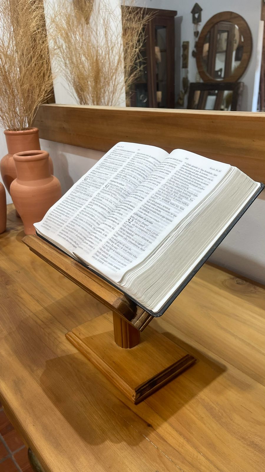 Ideal para deixar sua Biblia aberta em um cantinho especial da casa, trazendo presença e inspiração