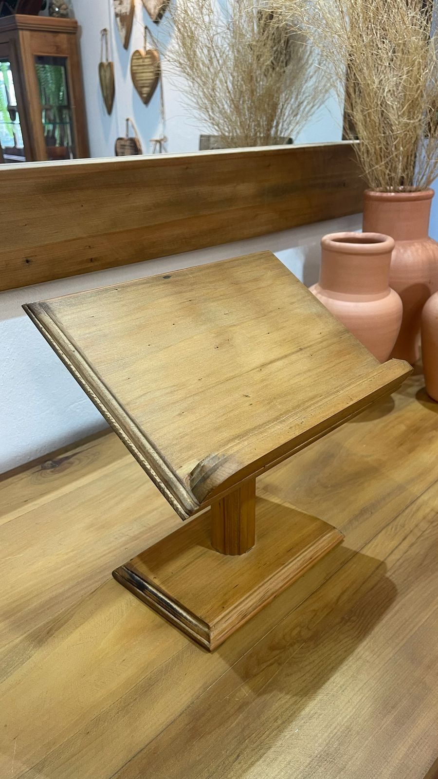 Feito artesanalmente em madeira de demolição, o nosso suporte para Bíblia une fé, beleza e propósito em uma única peça.
